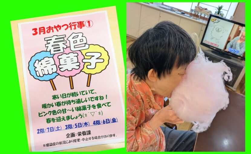 3月のおやつ行事は「春色綿菓子」です!今回はたきがしら芭蕉苑と、ちくぶ坂下ホームでも行いました!目の前で大きく膨らんでいく綿菓子に皆様大興奮!春の桜をイメージしたピンク色のふんわり甘〜い綿菓子で、美味しく楽しい午後を過ごしていただきました(*´ω`*)キラッと光る職員の様子、採用情報などは下のリンクへ↓↓↓https://www.instagram.com/chikubu.taki.saka0808?igsh=Mnc1ZzNodHdtNTRh※写真・動画は写っているご本人やご家族の承諾のもと使用しています。#綿菓子 #レク #春 #社会福祉法人 #竹生会 たきがしら芭蕉苑 特別養護老人ホーム ちくぶ坂下ホーム 介護 介護士募集中
